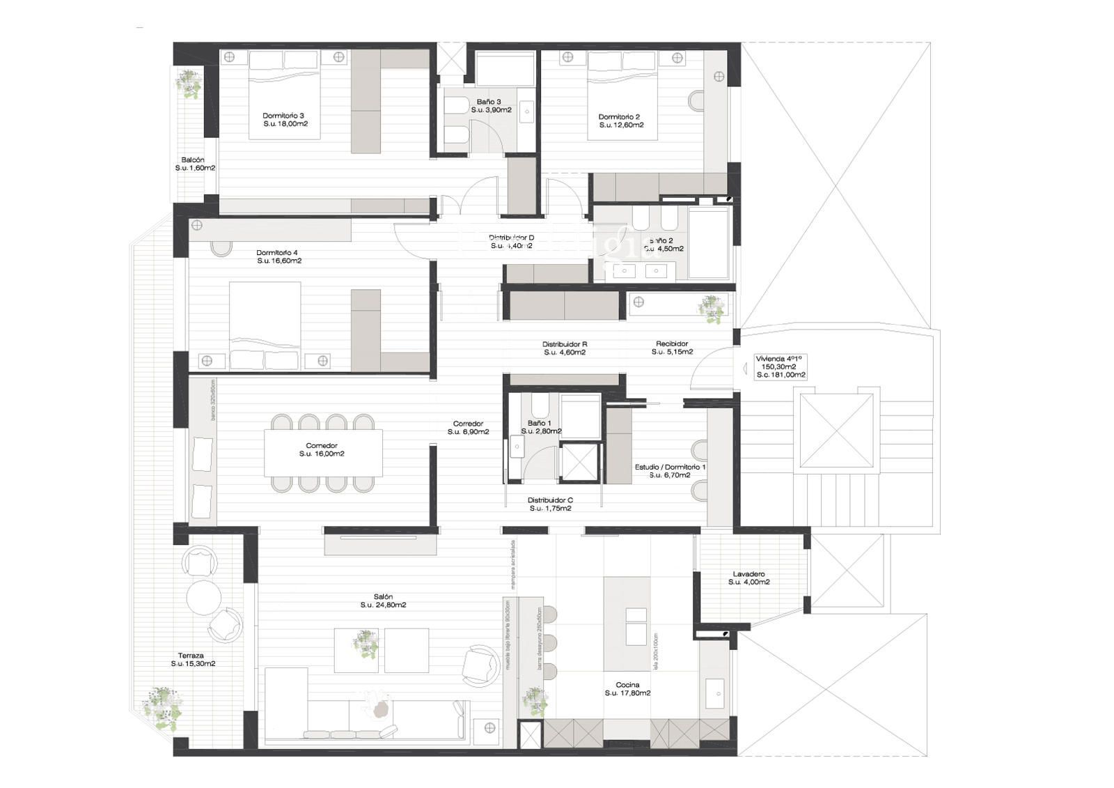 In the heart of the Eixample Right district, on the prestigious Roger de Llúria street, lies this exclusive 181 m² apartment with a terrace and parking space in the building, completely renovated with top-quality materials. Located on the fourth floor (with elevator access), it perfectly blends contemporary design with a functional and balanced layout, creating a welcoming, elegant atmosphere filled with natural light. The apartment features four spacious bedrooms, two of which are en suite, and a total of three full bathrooms with high-end finishes. The bright and airy living-dining room opens onto a sunny terrace, perfect for enjoying the outdoors, creating a chill-out area, or relaxing at the end of the day. The semi-open kitchen is equipped with state-of-the-art appliances, modern cabinetry, and a design that combines practicality and style. A bright, sunny, and surprisingly quiet apartment, facing a spacious and charming courtyard typical of the Eixample district, which provides light, tranquility, and very pleasant views. Among its features are parquet flooring, double-glazed windows, built-in wardrobes in all rooms, ducted air conditioning, and central heating. The property also includes a storage room and a parking space in the same building with direct access from the elevator, both included in the price. Living on Roger de Llúria means enjoying one of Barcelona's most desirable areas: an elegant and peaceful environment, surrounded by Modernist buildings, exclusive boutiques, renowned restaurants, and all the necessary amenities for comfortable living in the city center. Just a few minutes' walk from Passeig de Gràcia and Rambla Catalunya, the location also offers excellent connections to the public transport network and prestigious schools. A unique, spacious, and bright property that combines comfort, style, and an unbeatable location in the heart of the Eixample district.