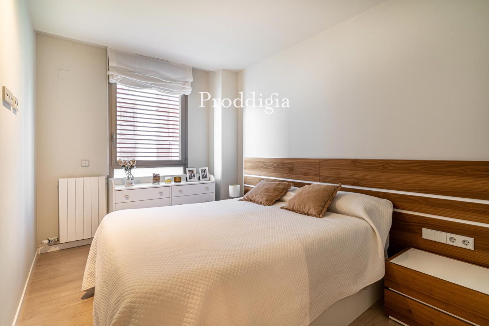 Of particular note is the latest technology incorporated into the development: the apartment features a home automation system, allowing you to control the automatic blinds, lighting, and climate control from your mobile phone, adding a touch of comfort and modernity.