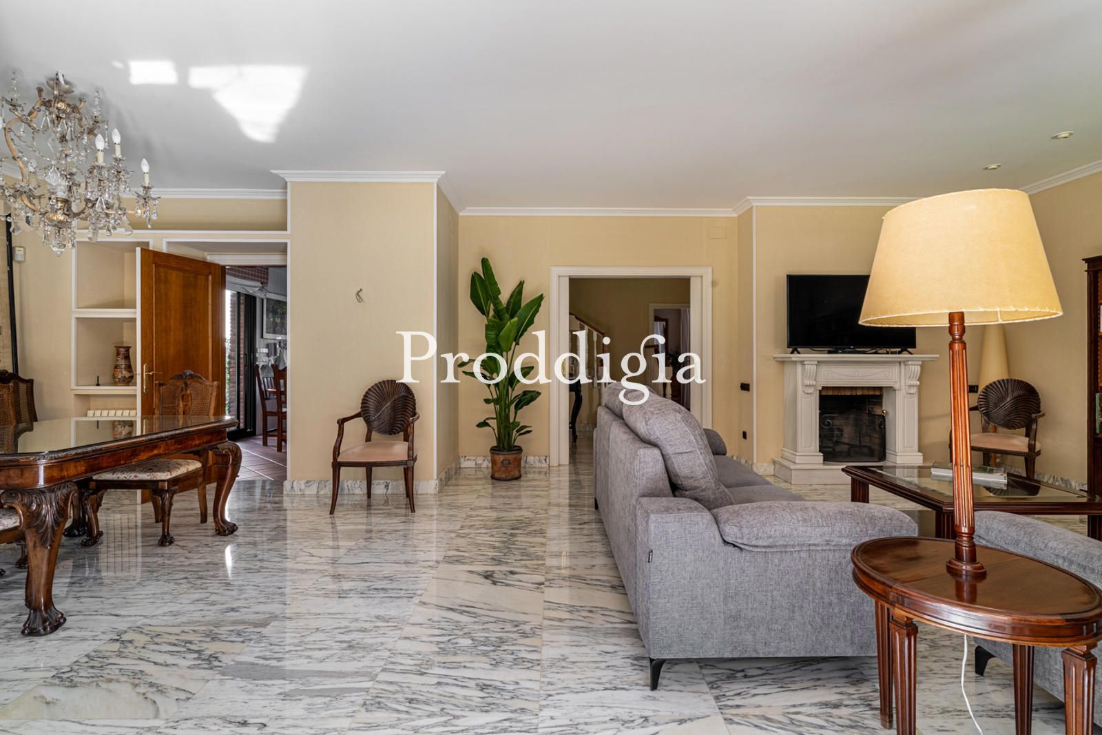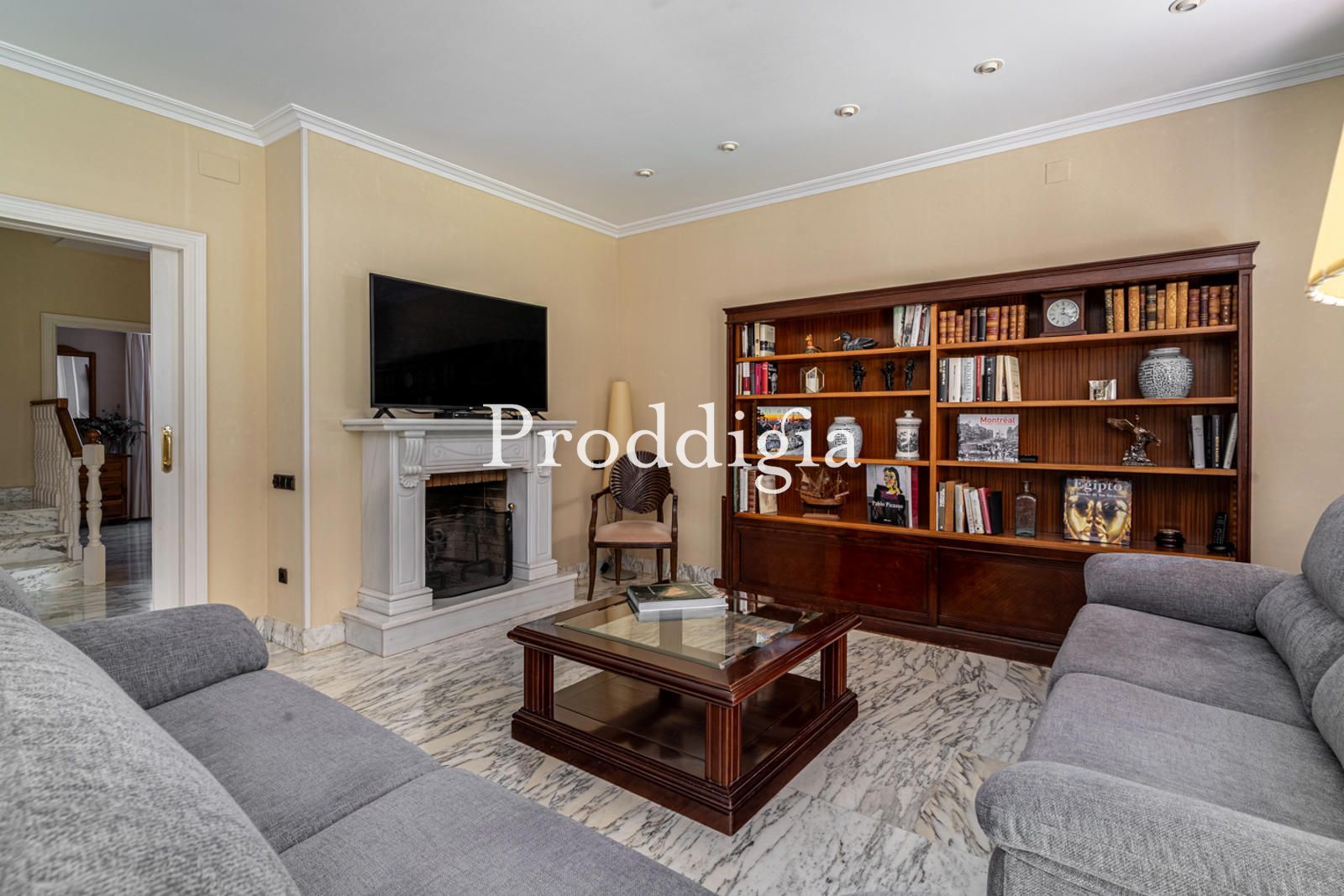 Al acceder a la planta principal, un elegante hall de entrada nos da la bienvenida y conduce a un impresionante salón-comedor de 58 m², un espacio amplio y muy luminoso gracias a sus grandes ventanales que conectan directamente con el jardín y la zona de piscina, creando una continuidad natural entre interior y exterior. En esta planta también se encuentra una amplia cocina office de 24 m² con chimenea ideal para disfrutar en familia y para reuniones informales. Completa este nivel un dormitorio doble con baño en suite, perfecto como habitación de invitados o despacho, además de un aseo de cortesía.